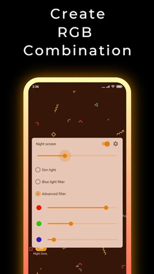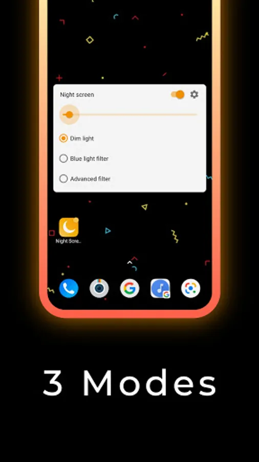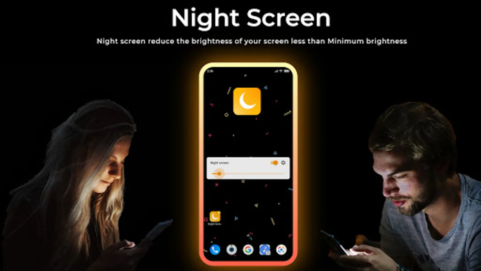 Night screen is a Free app that reduces the brightness of your Screen lower than the phone minimum brightness settings, it has many night screen modes: night mode reading screen, Ultra-low screen brightness, Customize your night screen filtersDifferent Night modes that are included in Night Screen app: