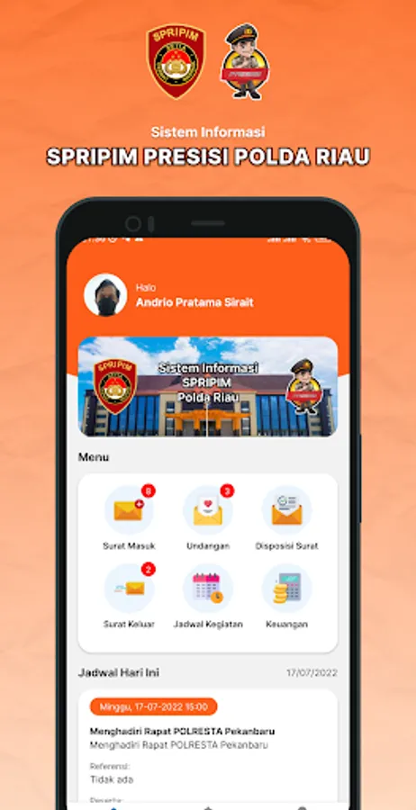 Riau Police Presisi SPRIPIM is an archive data collection and scheduling application for the Riau Regional Police leadership. It is hoped that it can help the data collection process at the Riau Police SPRIPIM