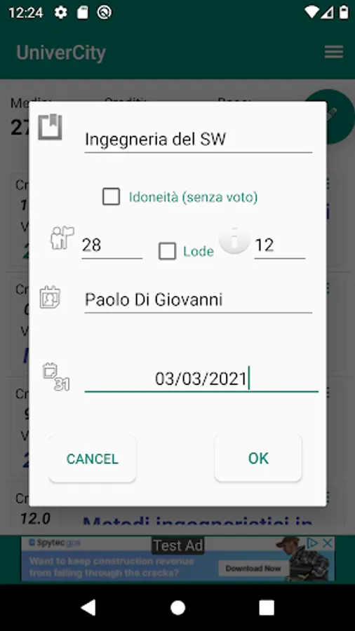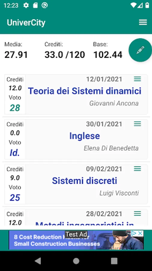 UNIVERCITY is an application developed for college students. Its main function is to save the examinations taken by students. With UNIVERCITY you can have your entire school career at hand. You can view your media, which can be arithmetic or weighted, you can view the credits acquired and the percentage of completion with respect to total credits. Directly calculates your start voting in the graduation session.