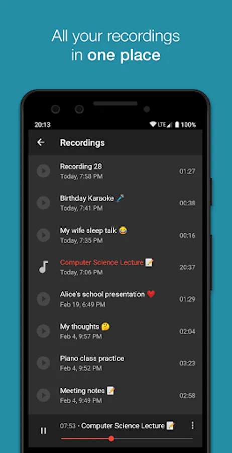 Free and easy to use audio recorder for Android, designed for high-quality and long-time recording with a clean and simple user interface.