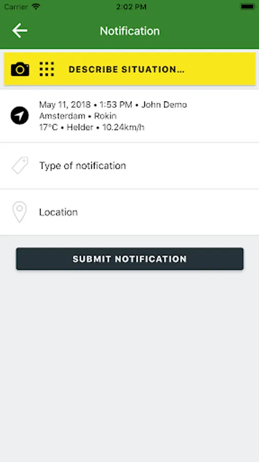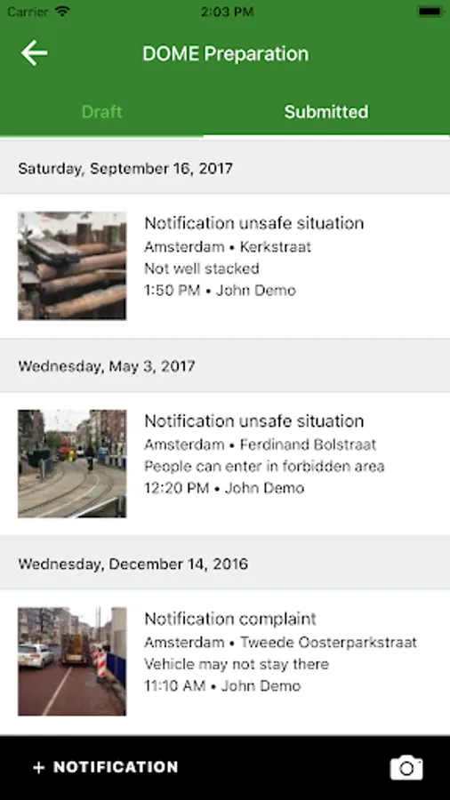 All employees, contractors and other personell on site can use the notification app to inform management about any quality of safety issue; management responsible for the site, project, unit or company will receive automatically the notifications.