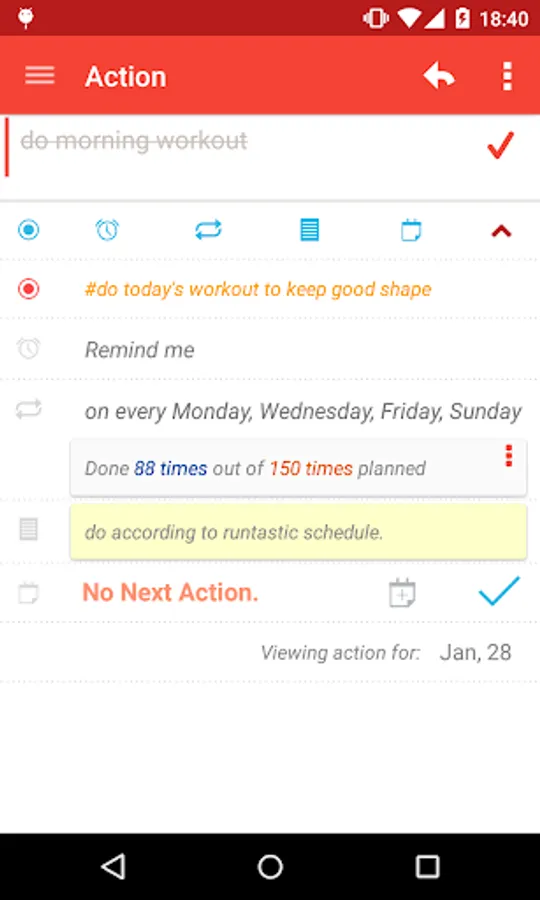 Actions have reminders, recurrences, and due dates for your to-dos so that you don’t miss them.