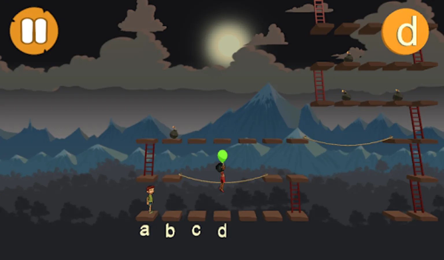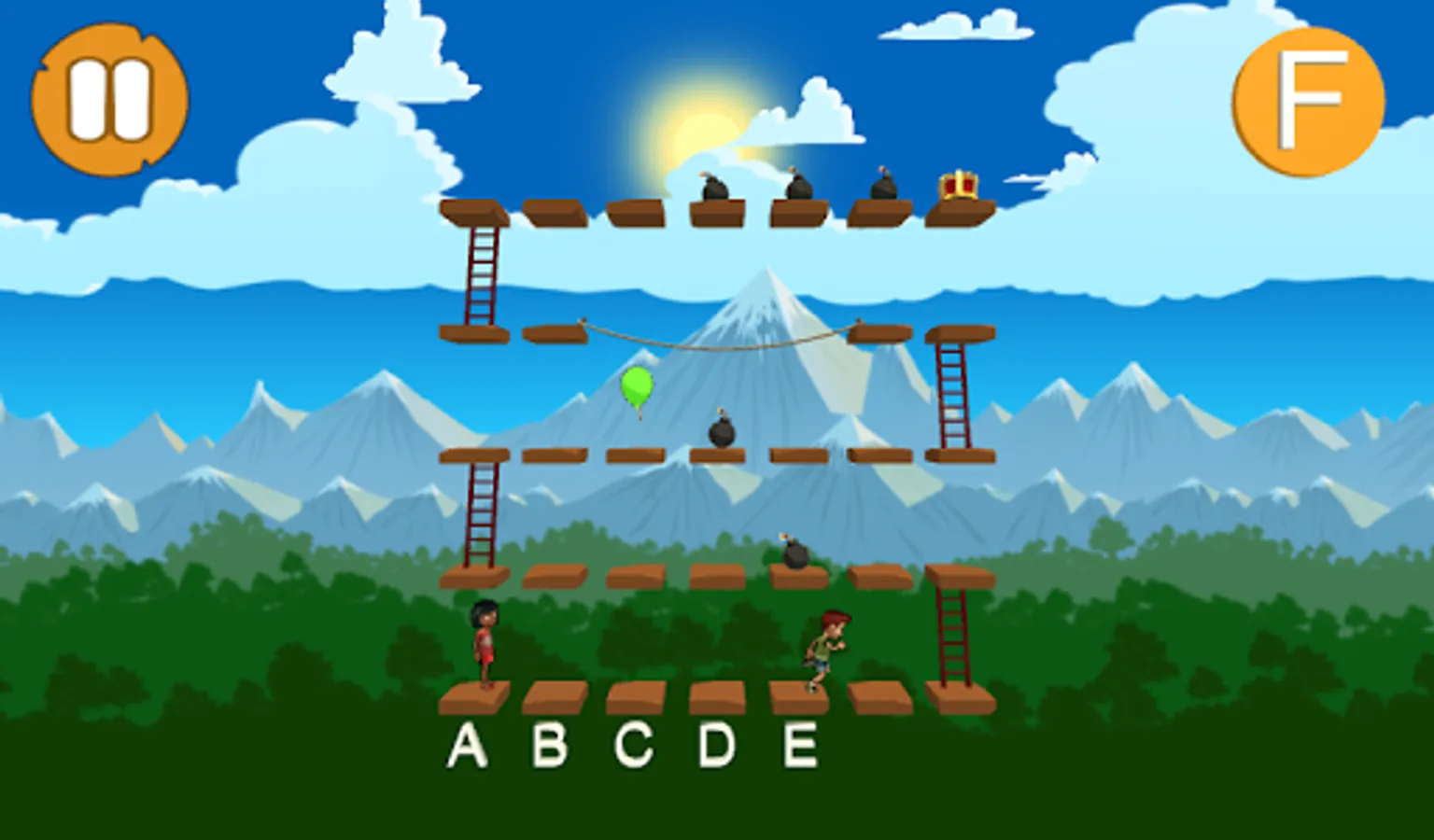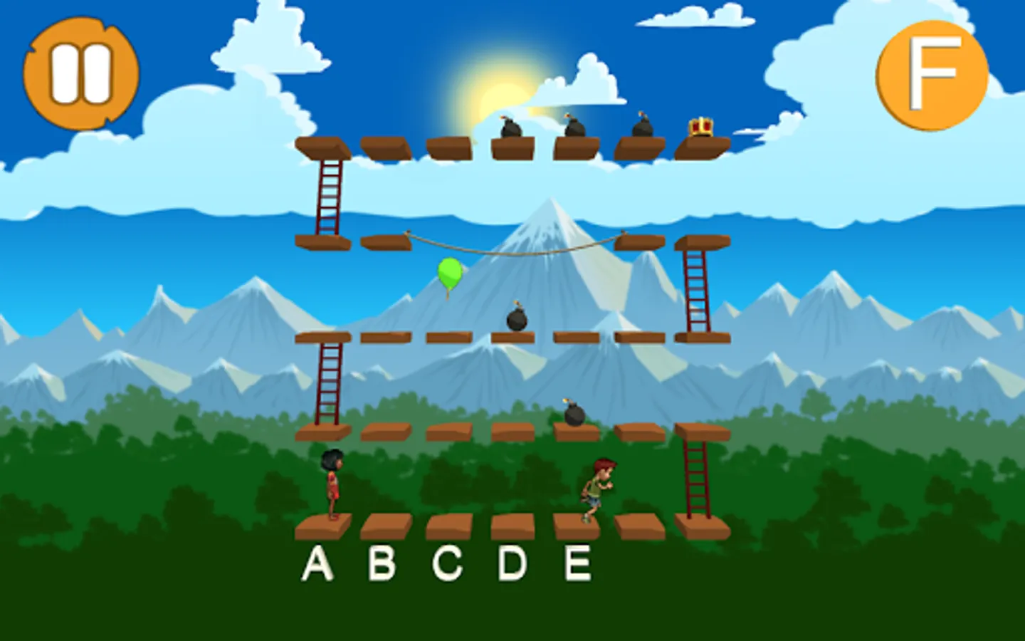 The fun way to learn the alphabet. Play yourself or with family and friends on the same device, up to five players. Climbing higher and higher, avoiding bombs and using balloons.