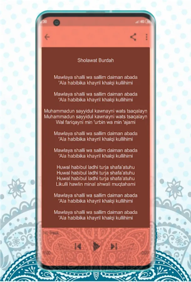The latest Qasidah Burdah Complete Syahdu application contains a collection of the most sought after collection of Qasidah Burdah, Hadrah Burdah, and other viral Sholawat songs with clear sound quality. For lovers of melodious Qasidah, Hadrah, and Sholawat songs, this application is for you. Qasidah Burdah is a prayer written by Al Imam Syarafuddin Abu Abdillah Muhammad bin Zaid Al Bushiri. This qasidah is usually read on various occasions, such as religious events, to taklim and sholawat assemblies.