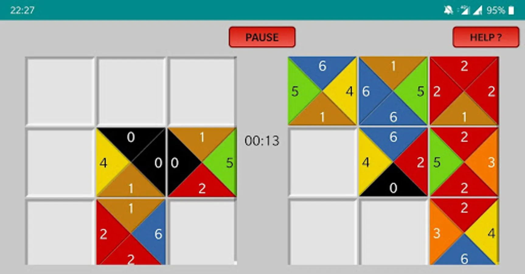 The player is given a grid of tiles, typically 3x3. Each edge of the tiles has a different value or color assigned to it. The aim of the game is to attempt to match each edge of the tiles to another edge that has the same value or number.