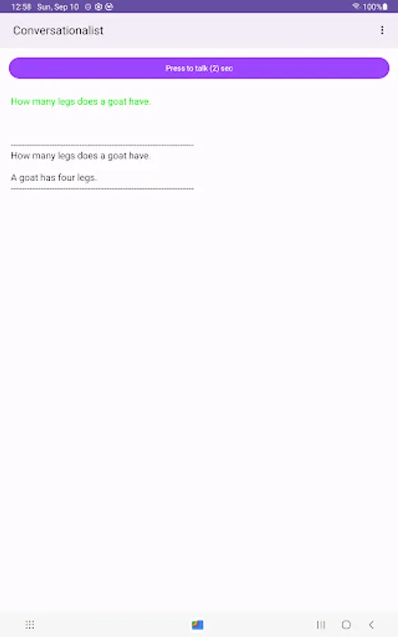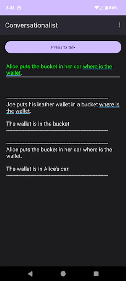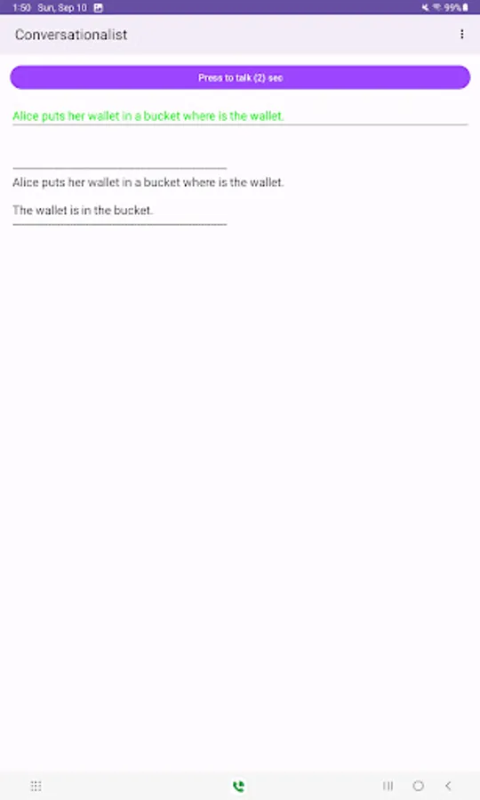 The app can be put in "convo" mode in which the app prompts the User automatically at adjustable intervals.