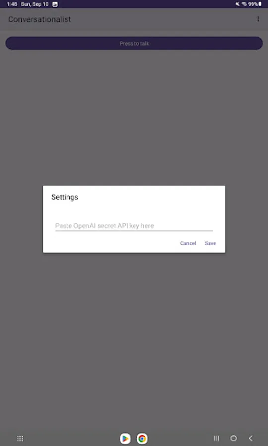 Chat GPT 3.5 is very inexpensive to use, often just pennies per month. To use this app, the user first creates an account on openai.com, obtains a secret API key, and pastes the key into Conversationalist.