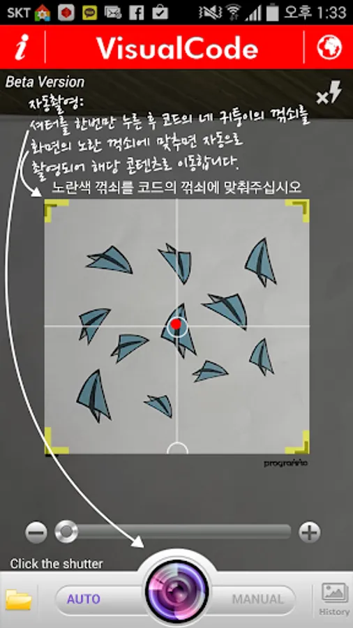 Auto Shooting: Shooting yourself being recognized automatically when the face angle to match the visual code