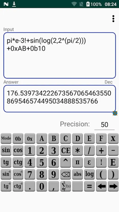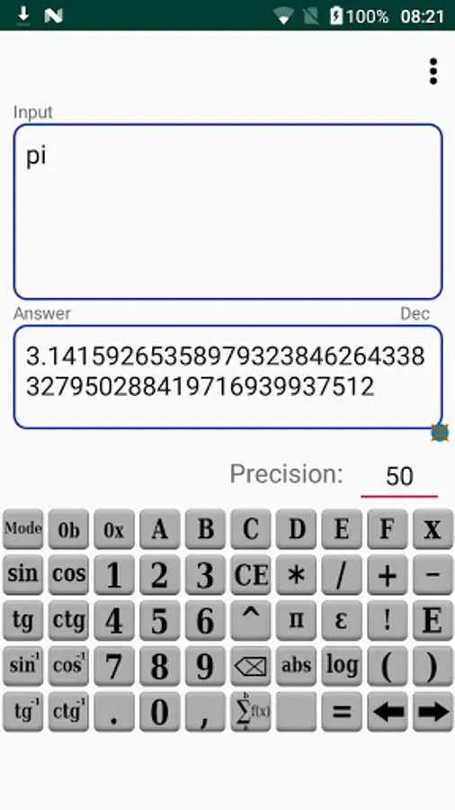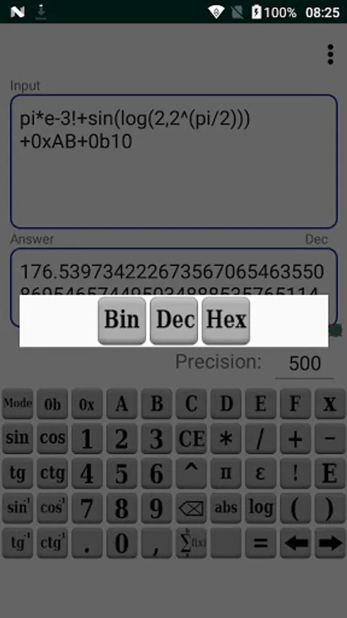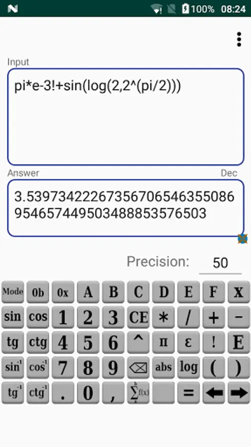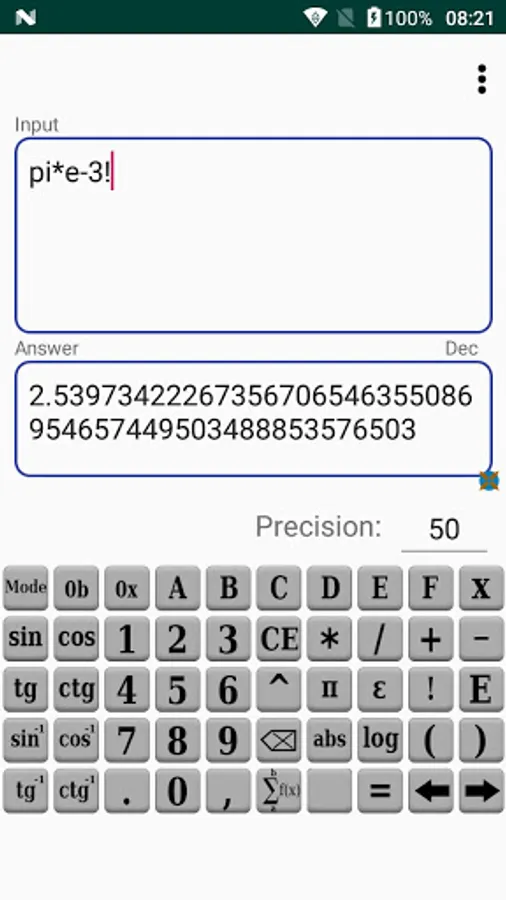 Infinite Precision Calculator - Big numbers lets You calculate mathematical expression with arbitrary precision.