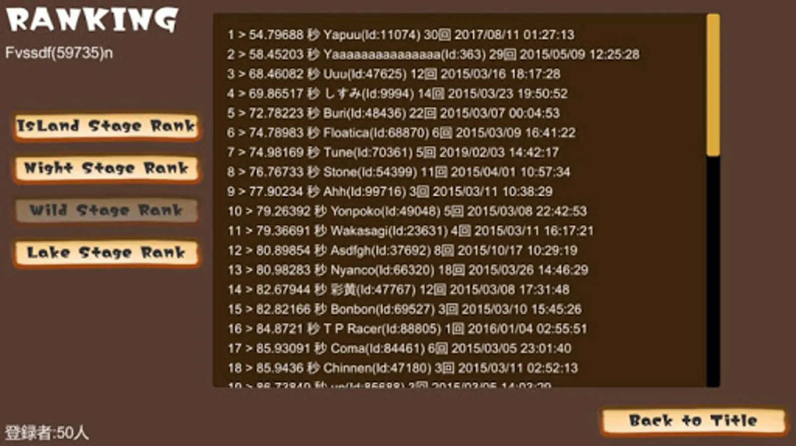 there is Internet ranking in game