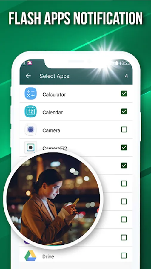 🌟 Support front flash and back flash. It will blink front flash notification for all. You can choose front flash notification or back flash .