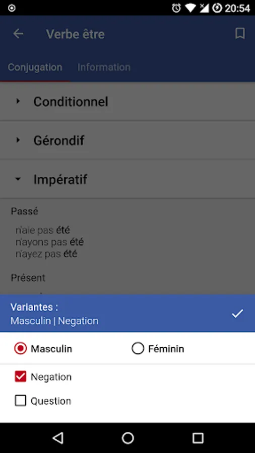 - Supported all configuration mode ( féminin/masculine | voix passive | Question | negation | Imprimer )