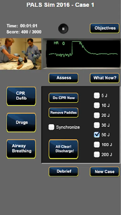You must evaluate the patient and electrocardiogram rhythm, decide on the appropriate management, and guide two assistants through the resuscitation. The two assistants are skilled, but will only do what you tell them to do. You must be the team leader for the resuscitation efforts.