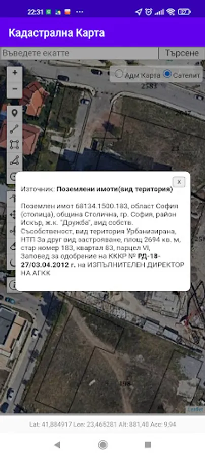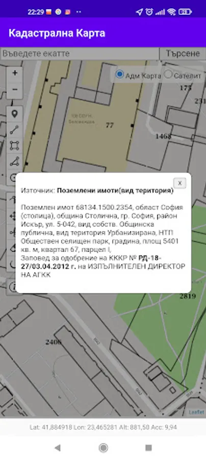 The "Cadastre BG" application is a civil initiative for convenient access to public cadastral information and enables users to find and outline property boundaries using the GPS receiver on their phone or tablet.
