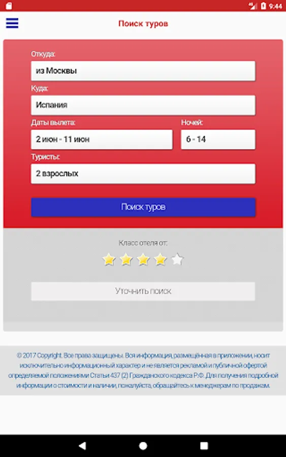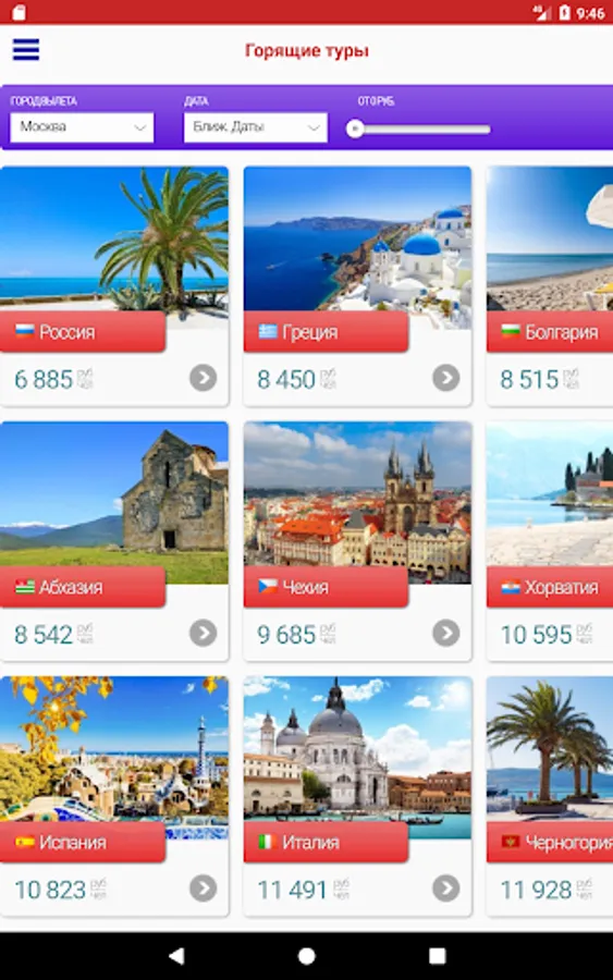 - find a tour according to the parameters you are interested in (travel dates, tour cost, number of tourists, duration of the trip, hotel stardom, type of food, destination for rest);