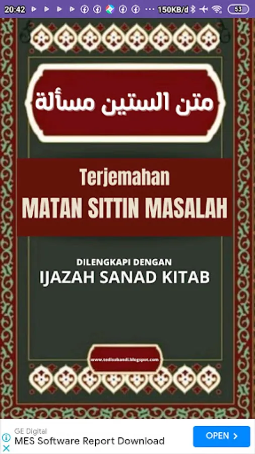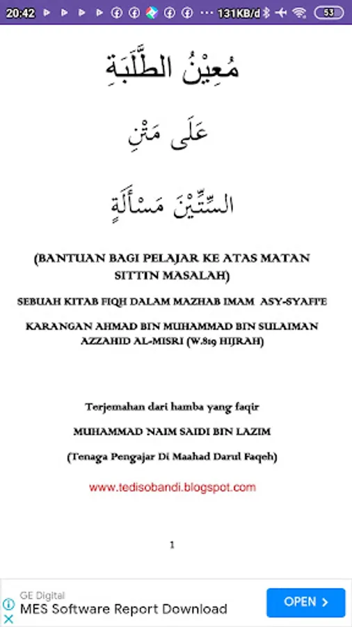 SYARAH SITTINA MAS'ALAH or better known as Syarah al Muqoddimah the book of the Syafi'i school of thought which discusses fiqh.