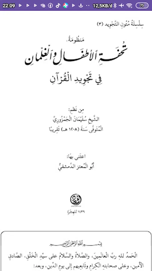 Tuhfat Atfal contains short poems that specifically discuss the law of Mati, Tanween and Majnun, compiled in a fairly simple way for beginners to learn the science of Tajweed. This book is widely used in different parts of the world by Muslims who study Tajweed. And this book, since its appearance until now, is still standing as one of the main books for those who begin to learn the science of intonation.
