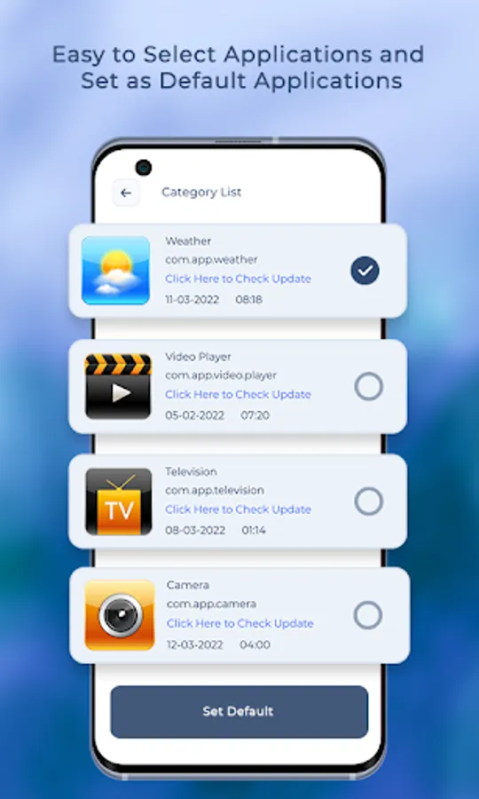Set default apps to open your files, images or videos in a particular app. Get app list category wise. Get details of permission used by each app on your phone. Also get other details of the apps like storage space used, app title, available app update, date of install and much more.