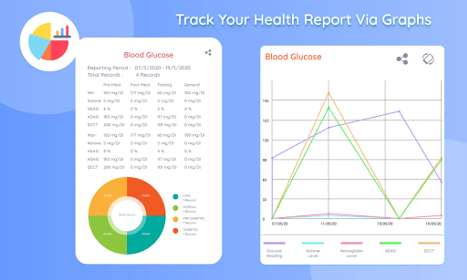 With above information it calculates blood glucose is Low, Normal, Pre-Diabetes and Diabetics.