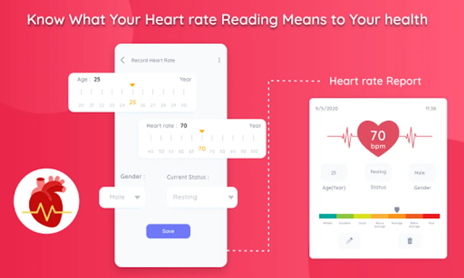 With above information it calculates heart rate is athlete, excellent, good, above average, average, below average or poor.