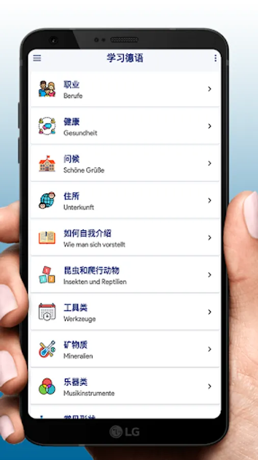 学习德语免费的应用程序将帮助你学习德语常用动词和 德语发音和 德语口语和 德语文法书. 此应用程序学习德语是学习德语和学习德语字典有用。 学习德语与此应用程序只是好玩,超过5000个德语单词将帮助你讲德语,甚至15天。
