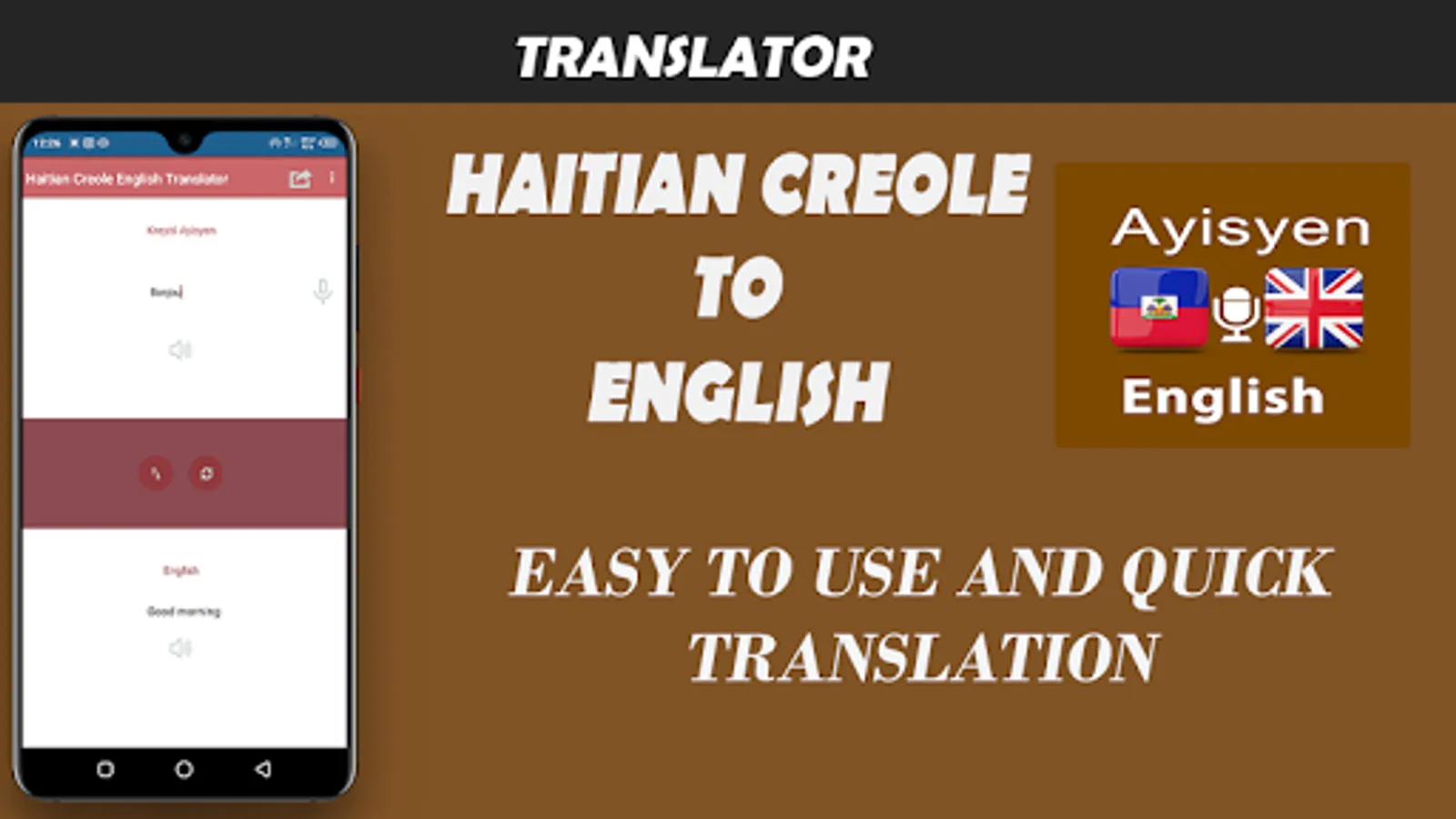 Li se GRATIS app pou tradui Ayisyen nan lang angle. Avèk sa a app ou kapab tou tradui konplèks fraz. Ayisyen angle tradiksyon app ka tradui nan split segonn. Ou kapab tou tradui soti nan clipboard. Kreyòl angle tradiktè app a se itil pou aprann lang. Li pa mande enfòmasyon login pou jwenn aksè nan app sa a.