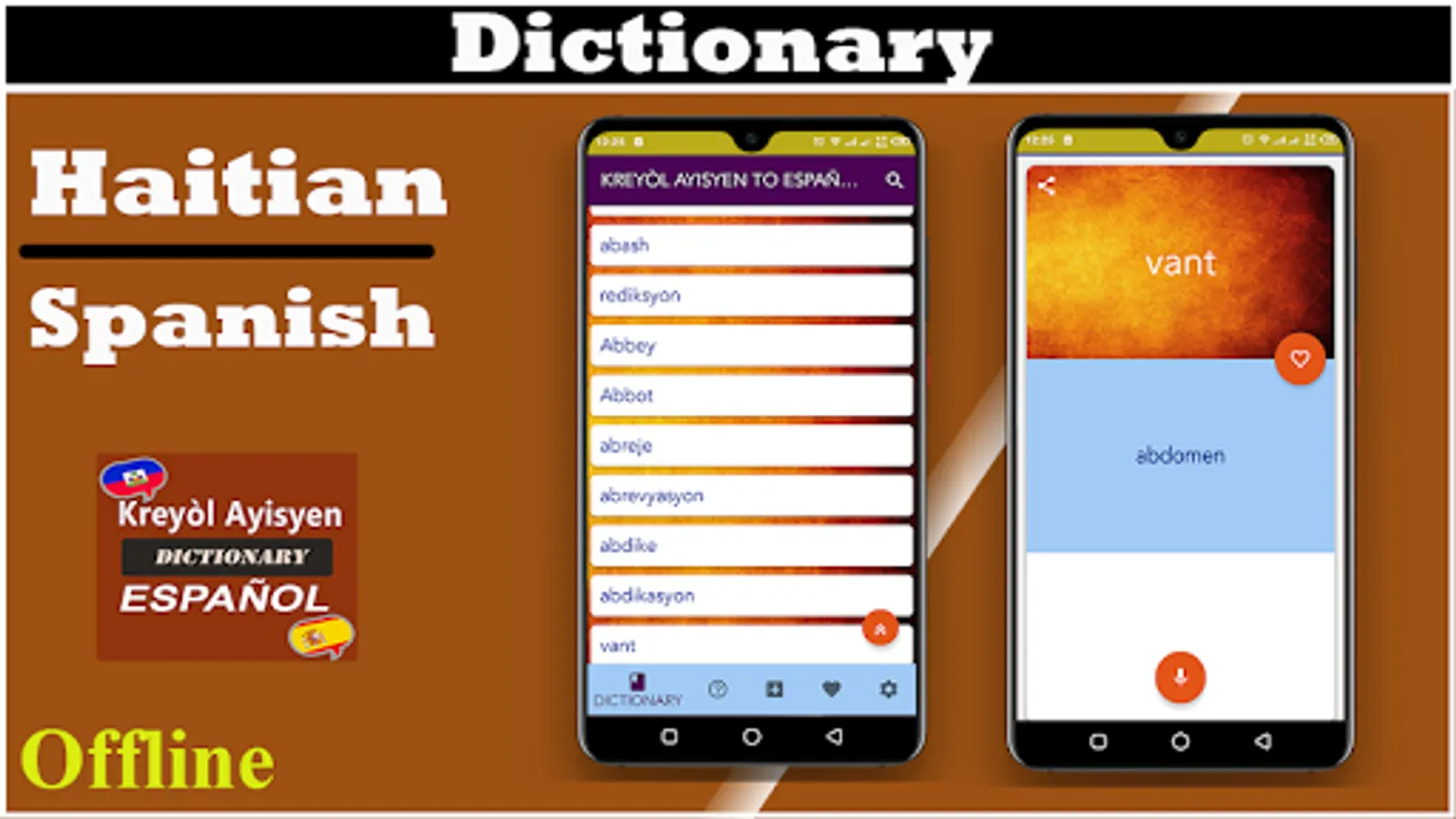It is FREE Dictionary from Haitian to Spanish. Creole Spanish word meaning app is used to find meanings of Haitian words in Spanish. It has meanings of even complicated words and sentences. Haitian to Spanish app also work offline. With text to speech feature you can get meanings of desired words.