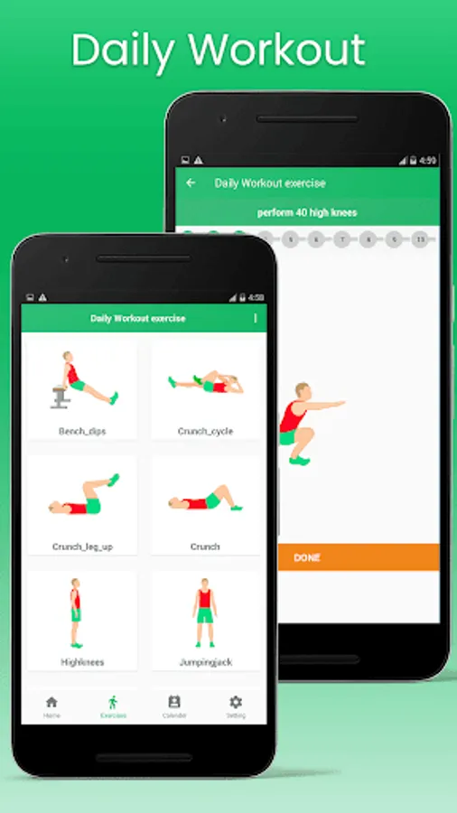 Doing the workout will make you feel stronger, healthier, improve energy and control weight. Exercise benefits every part of the body. You don't need any equipment for the workout. Complete daily workout with log.
