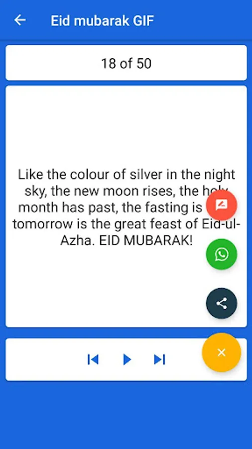 Eid Wishes and eid gif is an application which is simple and easy for the festival of EID Mubarak greeting. Send Best eid sms, eid wishes, eid quotes, eid images, eid gif, eid wallpapers, eid status, eid cards, eid greeting card, eid ecard, eid greetings, eid messages, eid poetry, eid shayari, eid quotations, eid mehndi design, eid photo frames to your friends and family.