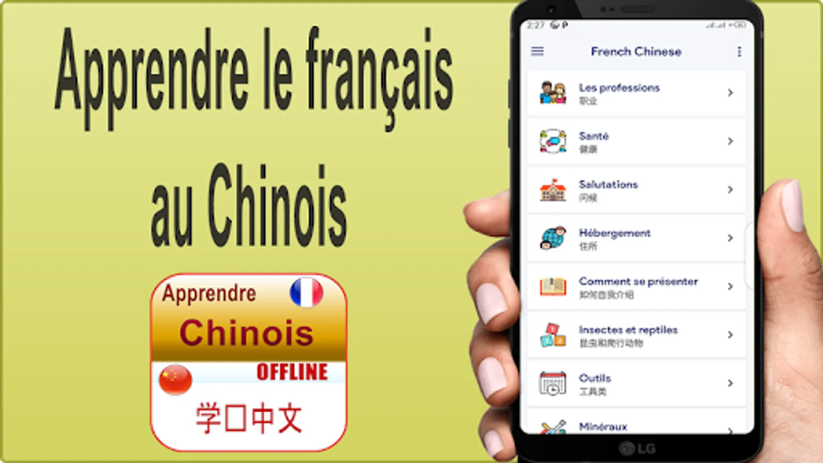 Ce est une application gratuite pour apprendre le Chinois. Vous pouvez apprendre l'alphabet chinois, la grammaire, les adjectifs, les verbes, le vocabulaire, la prononciation, les temps, les noms de fruits et les noms d'animaux. Vous pouvez rapidement apprendre le chinois en utilisant cette application gratuite et facile à utiliser, en ligne ou hors ligne, et elle vous aidera dans tous les domaines. Vous pouvez en apprendre apprendre l'alphabet chinois, apprendre chinois audio, apprendre chinois gratuity, apprendre chinois gratuit pour les débutants.