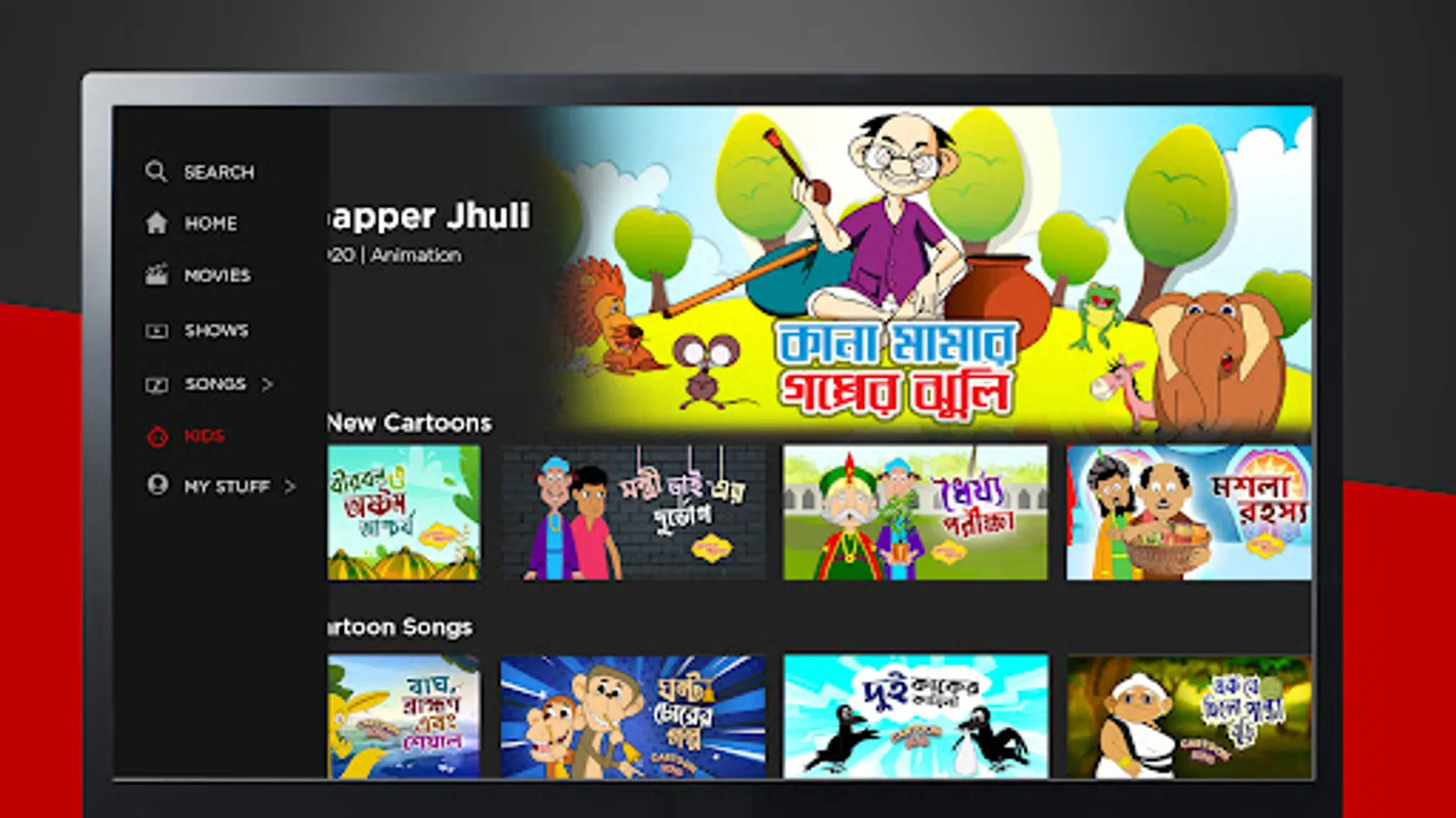 Kids: KLiKK has something for our little angels too. Bantul the Great, Hada Bhoda, Gopal Bhar, Vikram Betal, Akbar Birbal, Ramayan, Chhoto Ganesh and many more. Our category of animation not only develops children's ties to our culture but also pave the way for them to learn about Bengal's history.