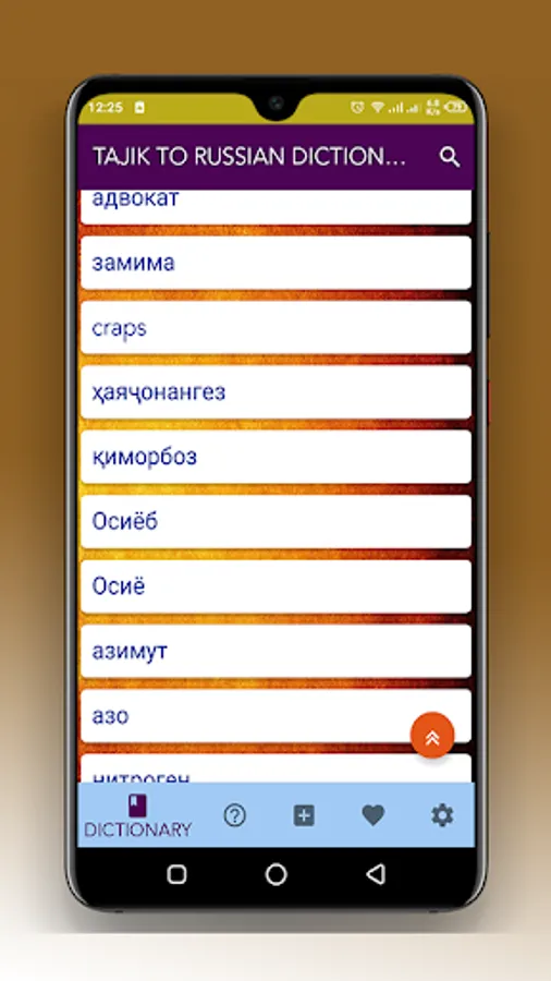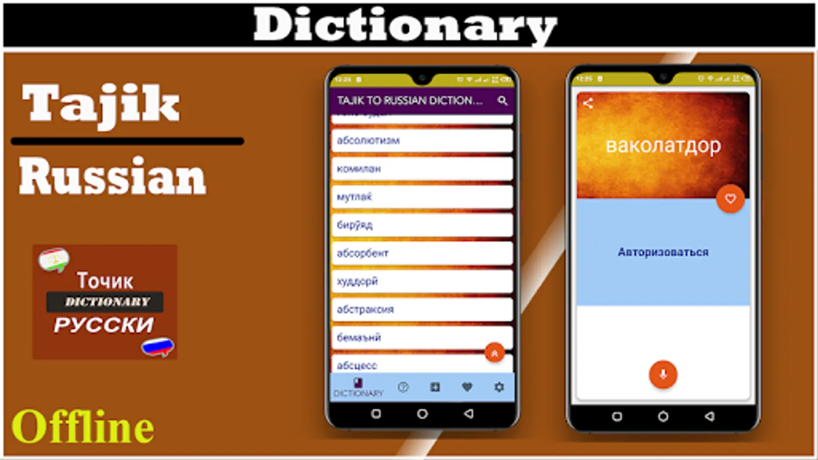 It is FREE Dictionary from Tajik Russian. Tajik Russian dictionary app is used to find meanings of Tajik words in Russian. It has meanings of even complicated words and sentences. Tajik to Russian dictionary offline app also work offline. With text to speech feature you can get meanings of desired words.