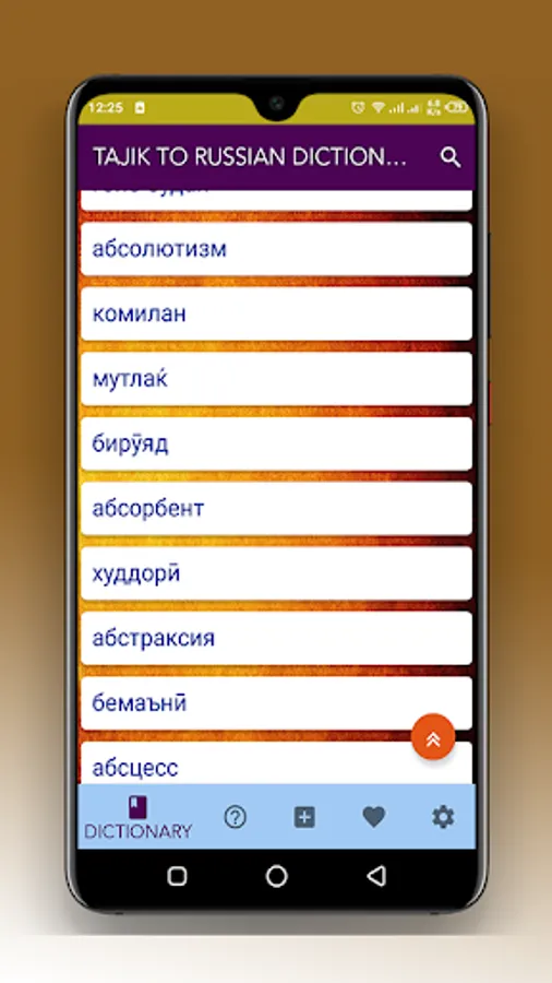 Таджикский русский бесплатный словарь приложение имеет простой в использовании и удобные для пользователя функции. Вы можете найти значение любой фразы с помощью этого приложения. Он имеет функцию вывода текста и голоса.