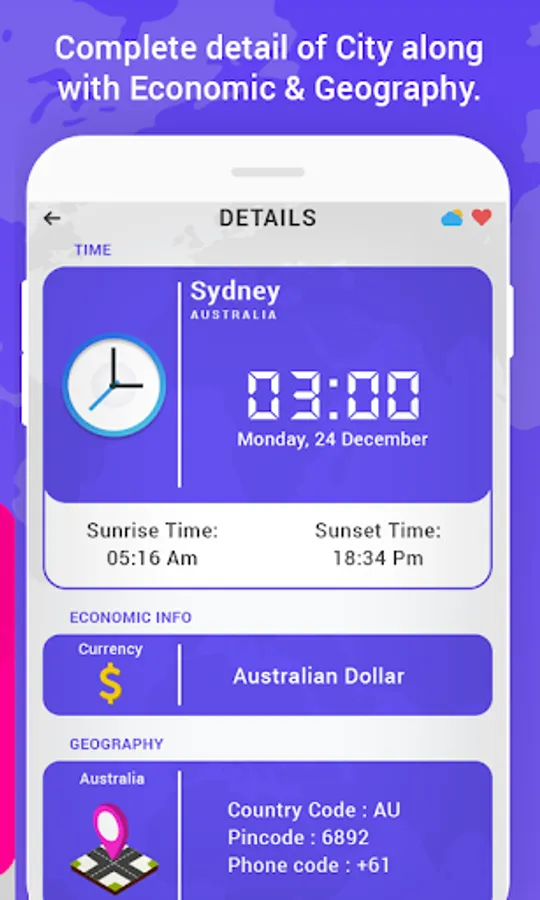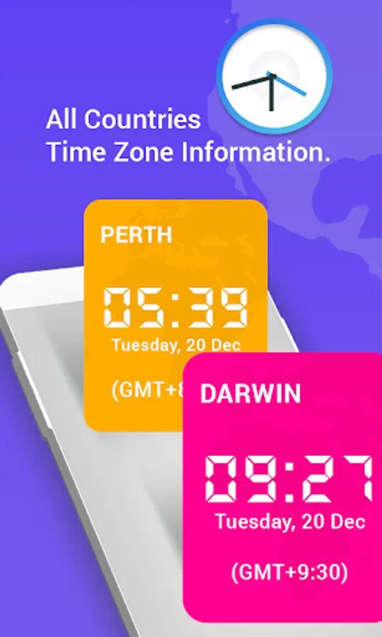 This app World Clock has a simple user interface and has information of time, weather, currency, map coordinates, etc, of more than 5000+ world cities.