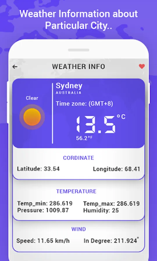 -- With time also get complete weather information & weather forecast of all cities of the world.