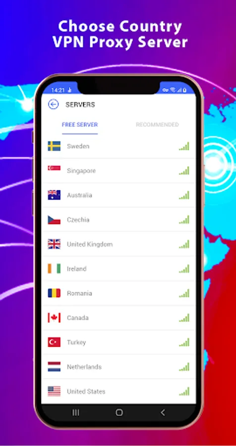VPN proxy 2021 providing a Stable, Unlimited, Secure, and Fast network, specially designed for Android devices.