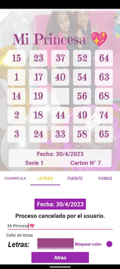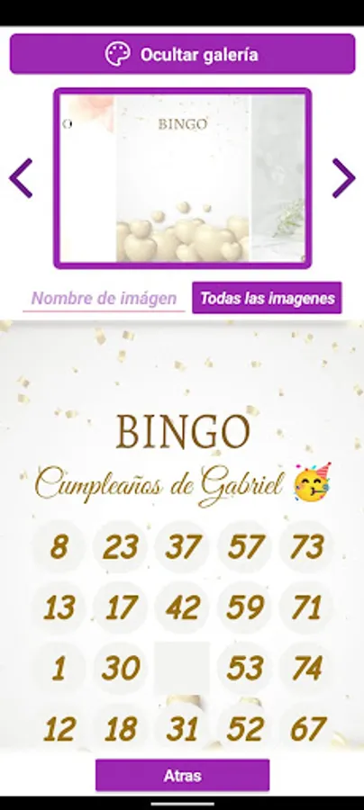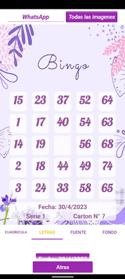 With this app you can customize the font type and size of the cartons or boards, the base of the numbers, the background image using even photos from your gallery if you prefer, it brings more than 40 templates to facilitate the design, dictate the numbers automatically in the interval of time that you have adjusted it and the final result in the cartons is incomparable.