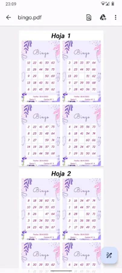 Once the design is customized, just click on generate cards and the desired quantity organized 4 by 4 per page will be automatically created and a PDF file with all the cards ready to print will be saved in the downloads folder of the device.