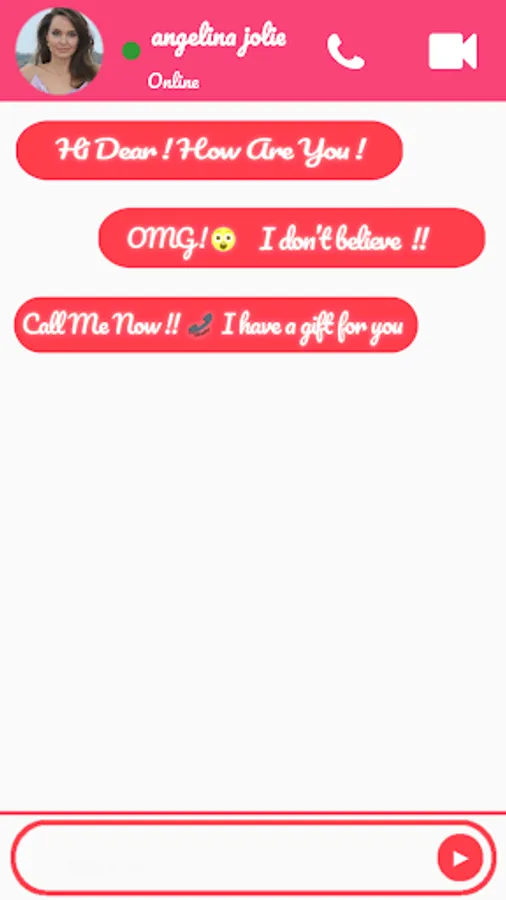 Are you a fan of angelina jolie, the popular star for kids ? Now you can have your own private video call with him, with angelina jolie Fake Video Call! This fun and easy-to-use app lets you create a realistic fake video call with angelina jolie, and fool your friends and family into thinking you're chatting with him.