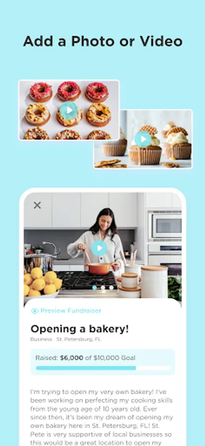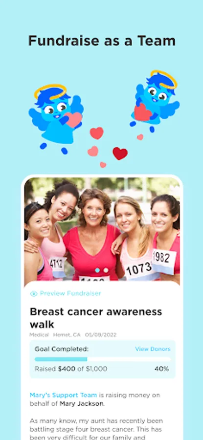 Set up a campaign in seconds by sharing your story, adding a photo or video, and invite your friends.