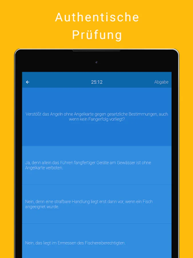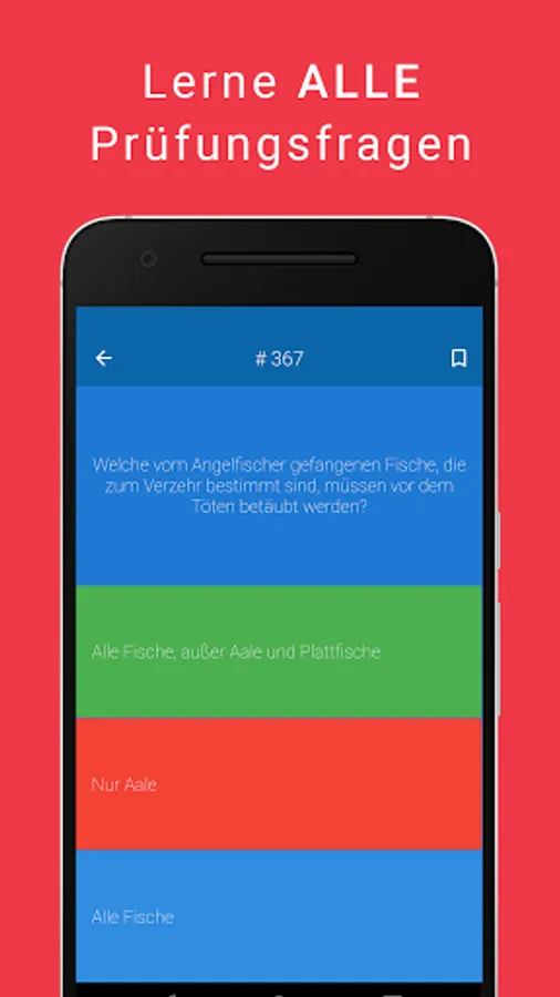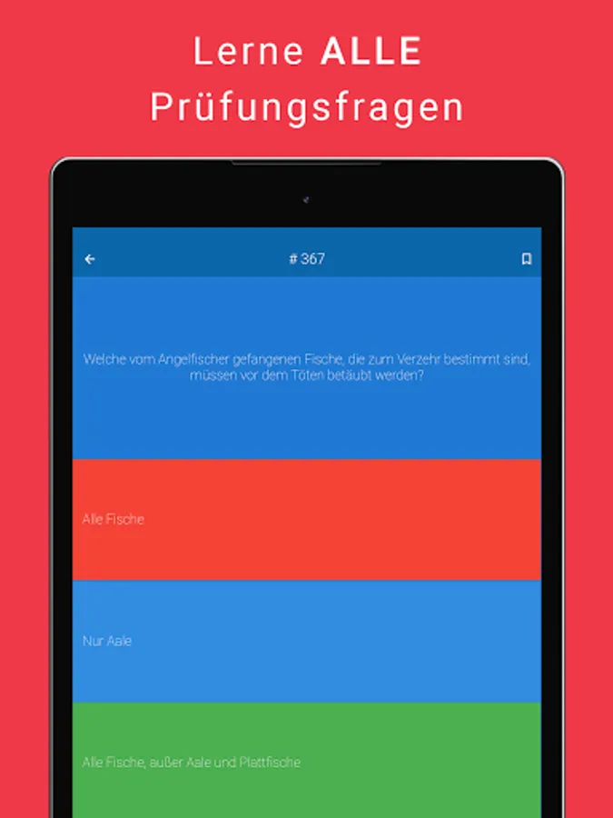 Our app contains the official 600 exam questions with the official correct answers in multiple choice format, just like the exam. The form and content of the two wrong answers are based on the real exam questions. So you are optimally prepared for your theoretical test for your Brandenburg fishing license.