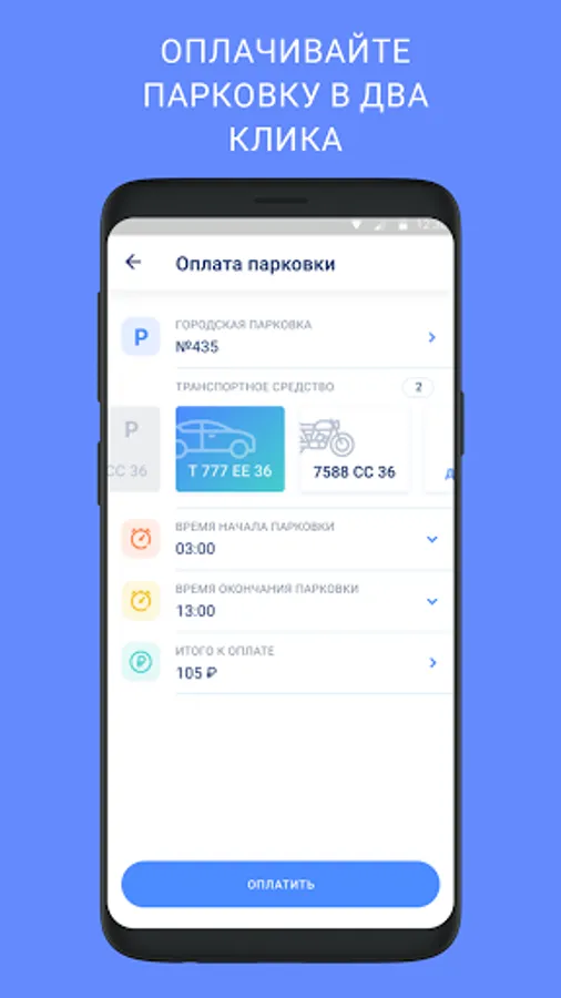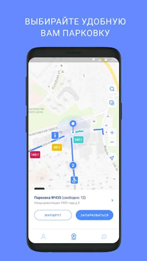 Find available parking lots on the map of your city. Park and pay for parking, get notifications.