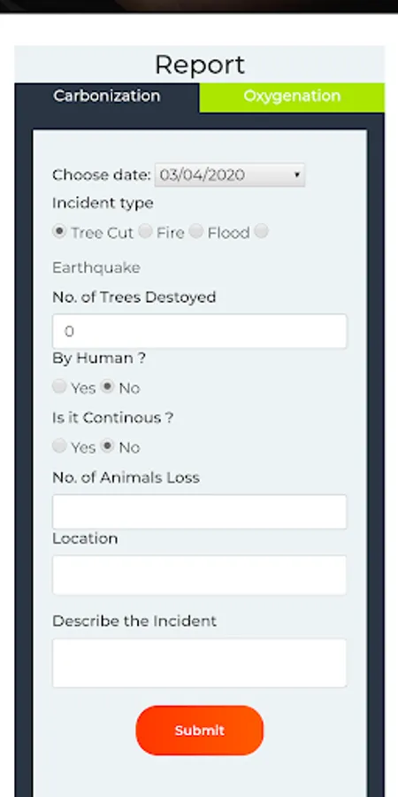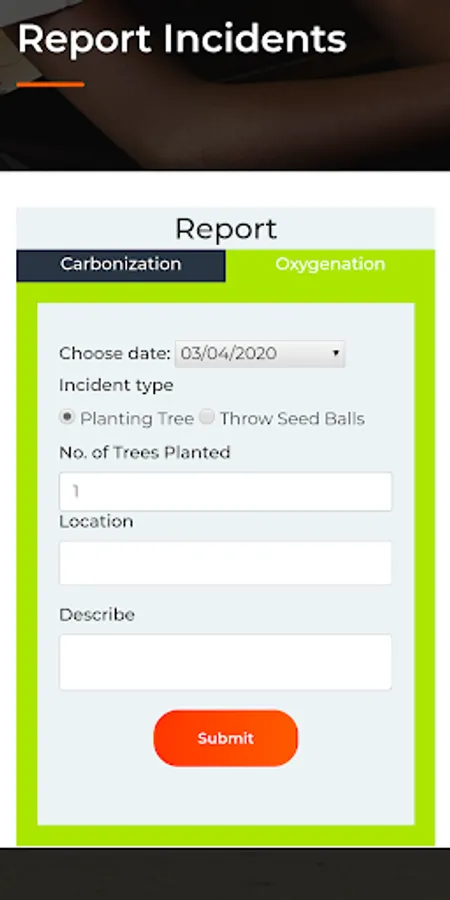 - Report incidents that make impact on global warming and gain points