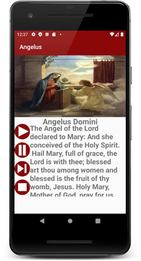 The angelus is a prayer that is prayed at a certain time with this application you will not forget it the time to pray it so that you do not forget it also includes the audio so you can hear it and pray at the same time