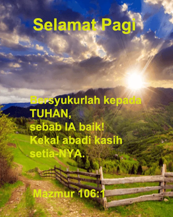 Ucapan selamat pagi Kristen/Kristian cocok diungkapkan atau dibagikan buat keluarga, sahabat maupun orang-orang yang kalian sayangi atau cintai. Saya percaya itu akan menjadi berkat istimewa bagi mereka. Orang-orang dekat Anda bisa mulai setiap hari dengan keadaan sehat dan penuh harapan.