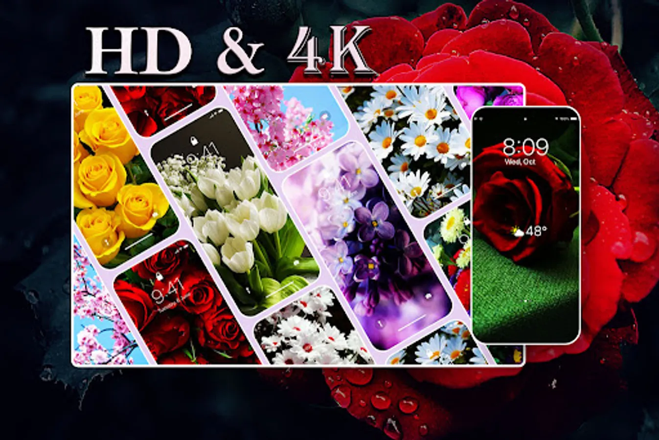 Flowers Wallpapers is an Android app specially made for fans of beautiful & colorful Flowers like roses, carnations, tulips, daisies, sunflowers, daffodils, gerberas, orchids, lilacs, jasmines, lilly of the valley, chrysanthemum, lilies, marigolds, lotuses, dahlia, lavender, crocus, cherry blossoms, hibiscus, violets, flower aesthetic, aesthetic in 2022, nature aesthetic, flowers nature, blue skies lilac, romantic pink, spring, lake, beautiful flower, exotic flowers, lotus flower, purple rose, white roses, fruit tree, origami art, gardening ideas, best flower wallpaper, lovely flowers wallpaper, colorful flowers, one flower wallpaper, rose flower wallpaper, vintage flowers wallpaper, daisy flower aesthetic wallpaper, paper flowers, most beautiful flowers wallpaper, amazing flowers wallpaper, leaf ornamental plants, little flowers wallpaper, and many more types of beautiful flower backgrounds. Find unique Flower Wallpaper images for your big phone screen from awesome cute flower wallpapers to start personalizing your phone with us if you are looking for HD Wallpaper features look no further, our app brings you high quality images like nature wallpapers to have Different types, you can set your wallpaper as home screen and lock screen, our app contains a large collection to find your type easily like girly wallpapers, customize your phone now and change the look of your phone screen for free. In this application, you can find more than hundreds of beautiful and HD wallpapers. This is really great! Get the most impressive customization ever! Free! Grab this chance! According to you? Don't think too much! Check it now and if you like our app please give your precious few seconds to rate and review us. Make your device more cool and modern with this Flowers Wallpaper HD. Faster! Install now and impress your friends.
