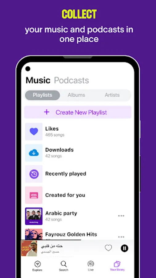Create your personalized music library - Gather your favorite songs and create playlists for your every mood and occasion. We will recommend music according to your taste. The more you play, the better the recommendations will be!