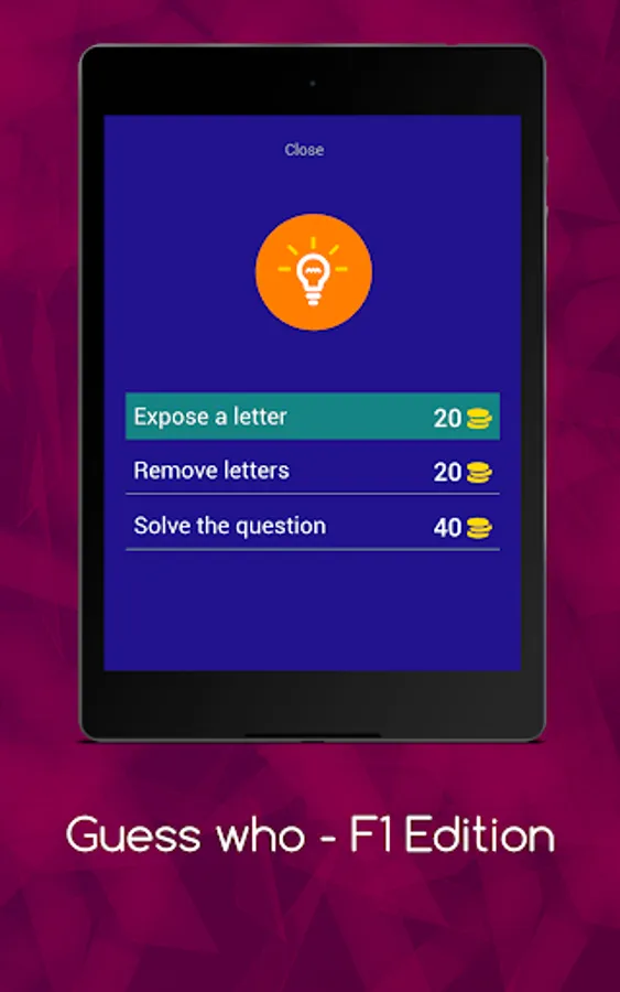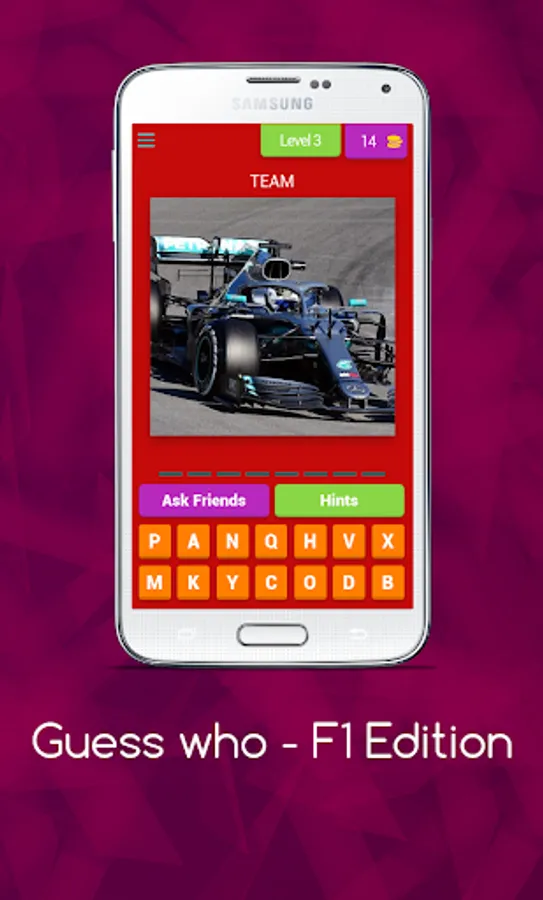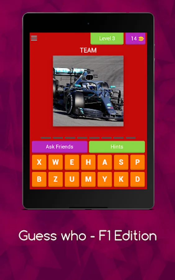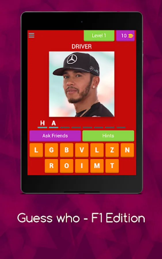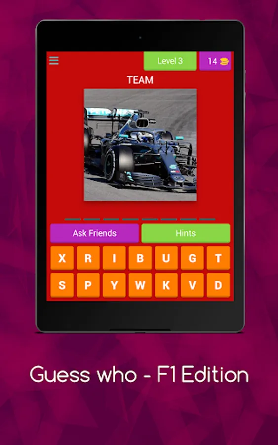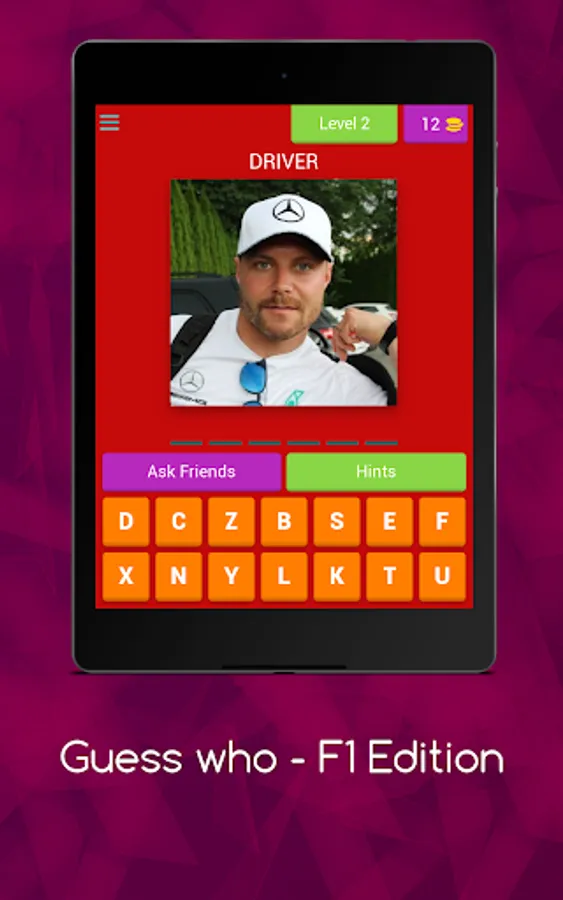 In Guess who - F1 Edition there will be a picture for every level and a specific number of letters, with those letters you have to compose the driver's name or the team's name.