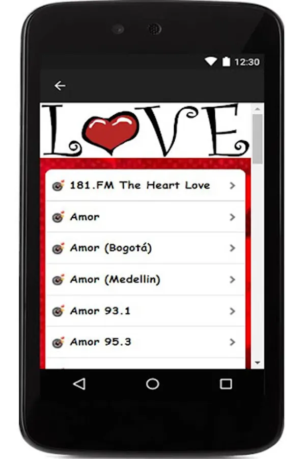 In this app contraras different stations such as: Love, Love (Bogotá), Love (Medellin), Amor 93.1, Love 95.3, Love Stereo, Kiss FM, Colombia Romance, Heart 97.3 FM, Melodic Formula, Hit FM Romantic Collection, Hotmixradio Hot, Isis Radio, La Buena Onda, La Carinosa (Cartagena), La Cariñosa (Barranquilla), La Cariñosa (Bogotá), La Cariñosa (Duitama), La Cariñosa (Pasto), the 40 Paraguay, Love 97.2 FM, Love Radio USA - 60 years Of Love Songs, Mansa, MGT Radio - Love Hits, Mia 93.7, Naxi Love Radio, Polska Stacja - New Romantic, Pudahuel FM, Quiéreme 1560, Radio Arabella - Love Songs, AS Radio, Radio Carolina, Colossal Radio