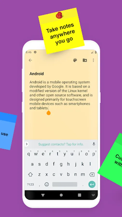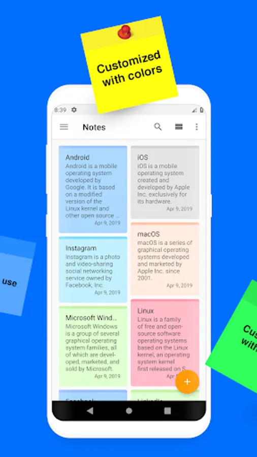 Notepad is a small and fast app to create, edit any notes in a simple way. With this note taking app, you can write notes, memos, messages, shopping lists and to-do lists.
